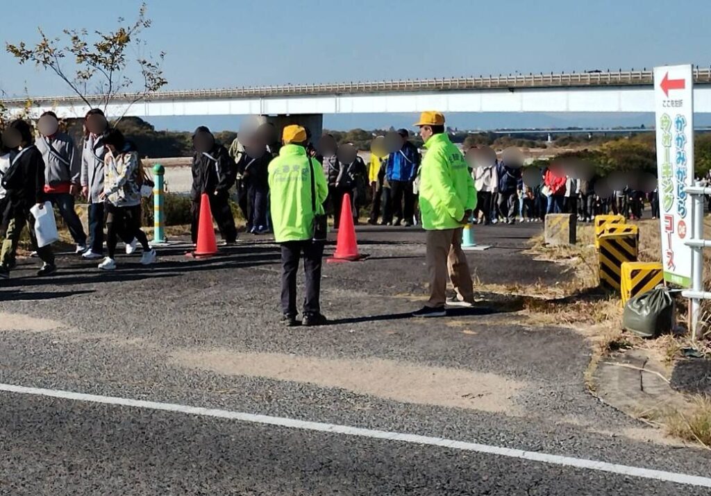 各務原地区交通安全協会では、令和7年11月30日、各務原市川島笠田町地内の河川環境楽園とその周辺おいて、ウォーキングイベント「かかみがはらDEウォーキング2025」の開催に協力し、参加者の交通誘導等を行いました。