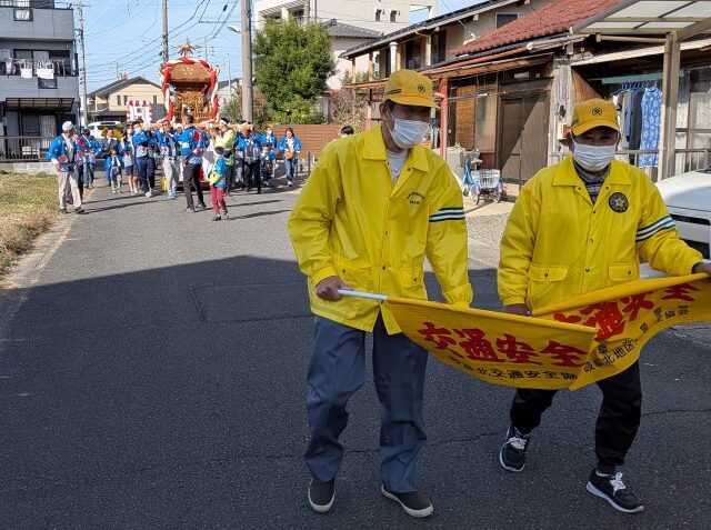 岐阜北地区交通安全協会則武支部では、令和7年11月23日、則武文化振興会が主催し則武地区で開催された「2025則武祭神輿パレード」に協力し、交通誘導などを行いました。