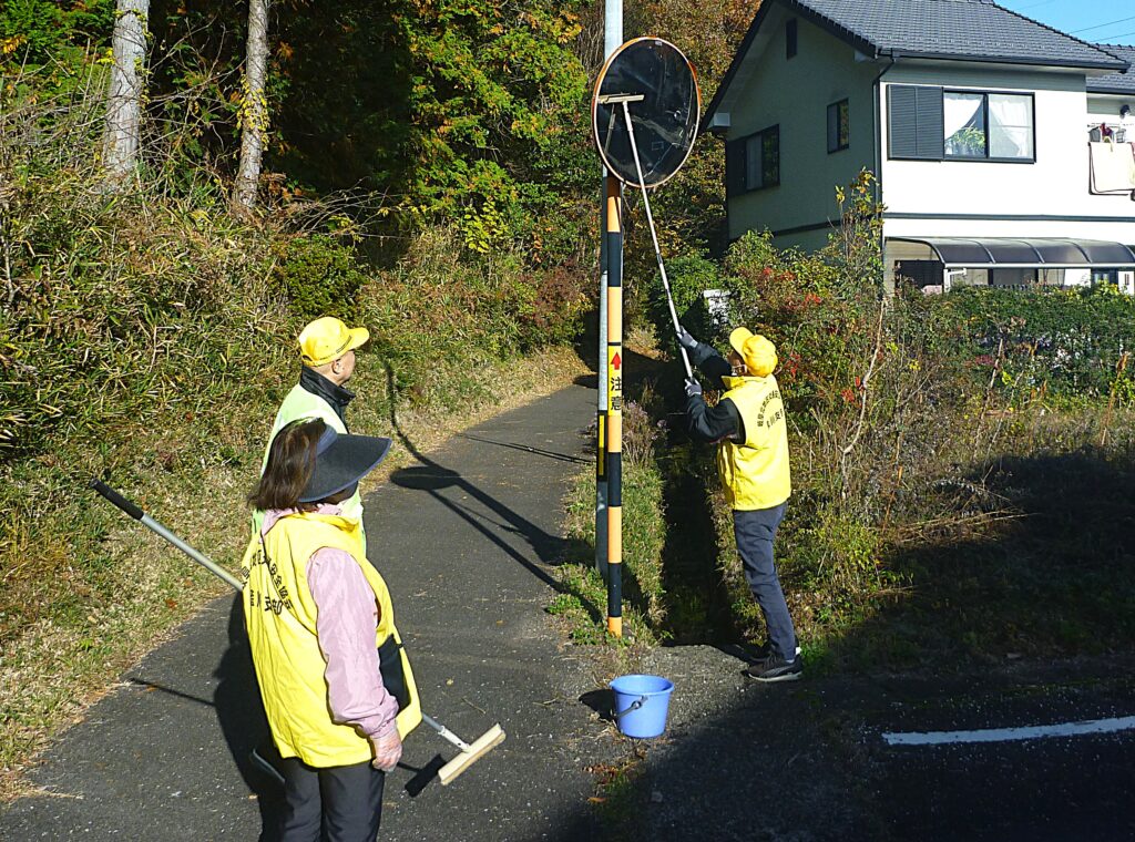岐阜北地区交通安全協会藍川支部では、令和7年11月30日、藍川地区内の通学路において、カーブミラー等交通安全施設の点検や清掃を行いました。