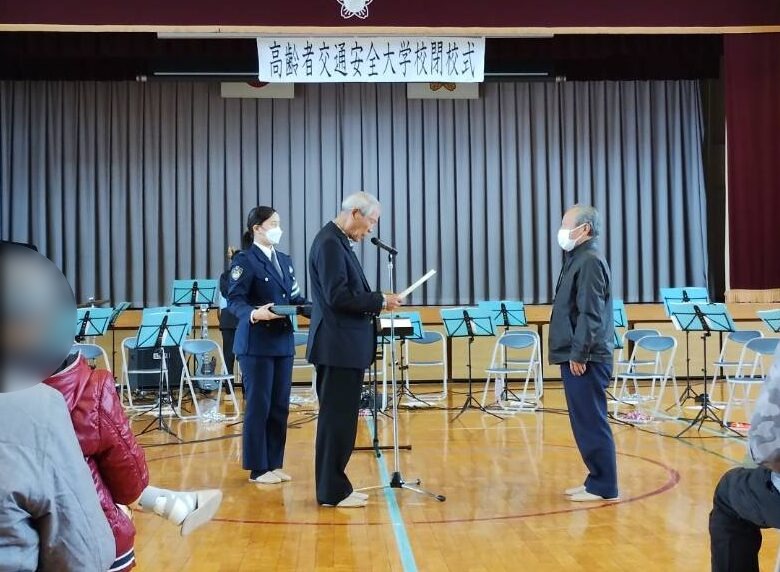 各務原地区交通安全協会では、令和8年2月6日、各務原市大佐野町1丁目地内の各務原市立稲羽西小学校体育館において、稲羽西地区・川島地区合同高齢者交通安全大学校の閉校式を開催しました。