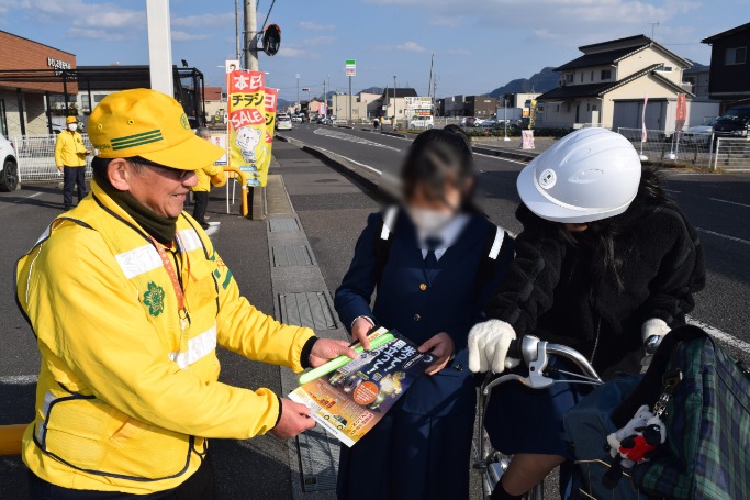 岐阜北地区交通安全協会では、令和8年2月12日、岐阜市下土居2丁目地内において、通行中にみなさんに反射材用品やチラシをお配りして、交通安全を呼びかけました。