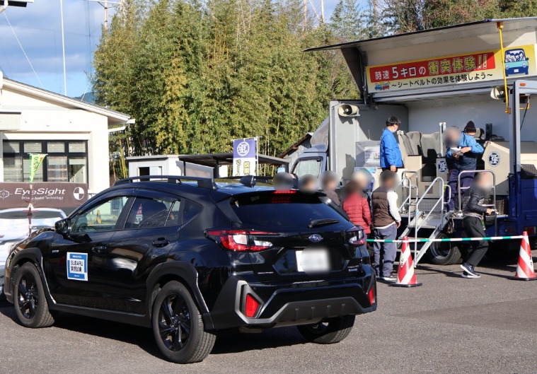 中濃地区交通安全協会では、令和7年12月11日から12月20日までの年末の交通安全県民運動の活動として、令和7年12月12日、美濃市生櫛地内の中有知地域ふれあいセンターにおいて、美濃地区高齢者交通安全大学校の12月講座を開講しました。12月講座では、受講者のみなさんにシートベルトコンビンサーや安全サポート車の体験等をしていただきました。