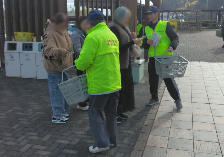 可児地区交通安全協会では、令和7年12月11日から12月20日までの年末の交通安全県民運動の活動として、令和7年12月15日、可児市下恵土地内のスーパーマーケット「ヨシヅヤ可児店」センターにおいて、可児市交通安全女性の広報活動を支援しました。