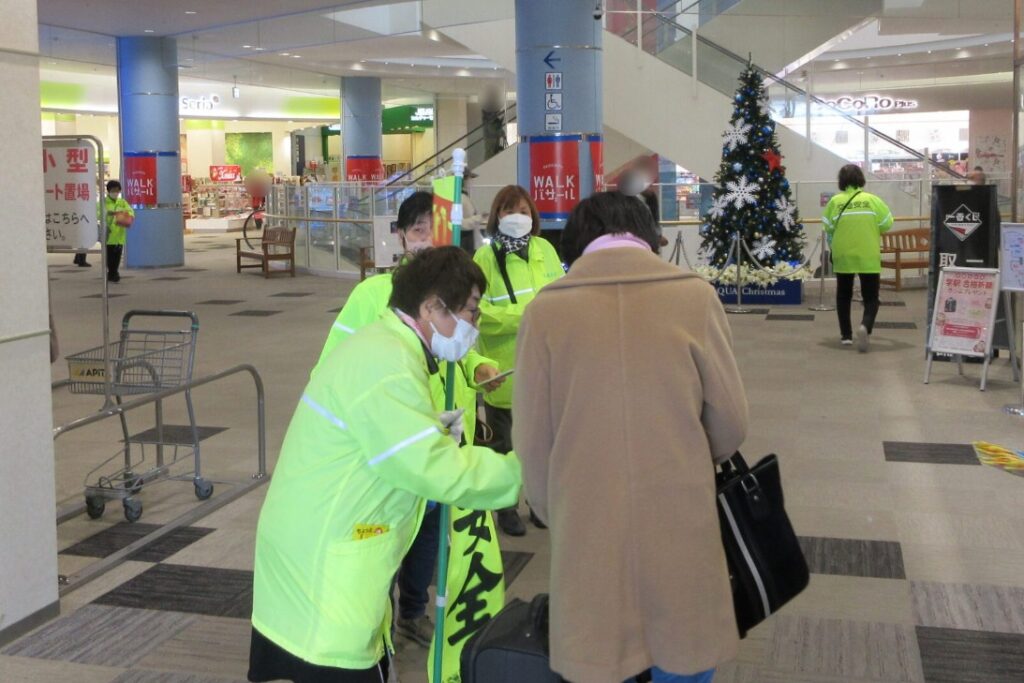 大安地区交通安全協会女性部では、令和7年12月11日から12月20日までの年末の交通安全県民運動の活動として、令和7年12月16日、大垣市林町6丁目地内のショッピングセンター「アクアウォーク大垣」において、来店されたみなさんにチラシや交通安全グッズをお配りして、交通安全を呼びかけました。