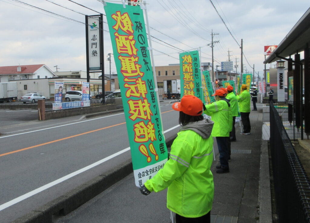 大安地区交通安全協会神戸支部では、令和7年12月11日から12月20日までの年末の交通安全県民運動の活動として、令和7年12月19日、安八郡神戸町大字神戸地内の神戸交番前において、のぼり旗を掲げる等して、通行中のみなさんに飲酒運転撲滅を呼びかけました。