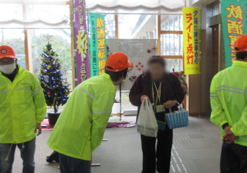 大安地区交通安全協会では、令和7年12月11日から12月20日までの年末の交通安全県民運動の活動として、令和7年12月15日、大垣市林町6丁目地内の大垣徳洲会病院において、施設利用者のみなさんにチラシや交通安全グッズをお配りして、交通安全を呼びかけました。