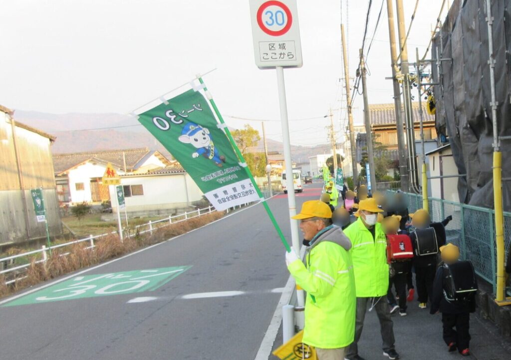 大安地区交通安全協会青墓支部では、令和7年12月11日から12月20日までの年末の交通安全県民運動の活動として、令和7年12月17日、大垣市青墓町1丁目地内の大垣市立青墓小学校周辺において、通学児童の見守り活動を行うとともに、同校周辺に設定された「ゾーン30」規制の広報を行いました。