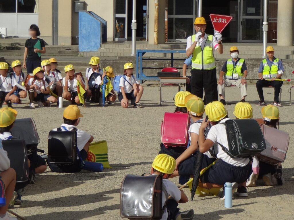 養老地区交通安全協会では、令和7年9月21日から9月30日までの秋の全国交通安全運動の活動として、令和7年9月29日、養老郡養老町船附地内の養老町立笠郷小学校において、西脇養老地区交通安全協会長が児童のみなさんに交通安全の話をした後、通学路で見守り活動を行いました。