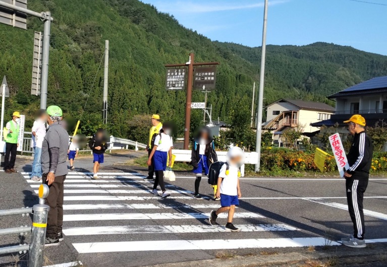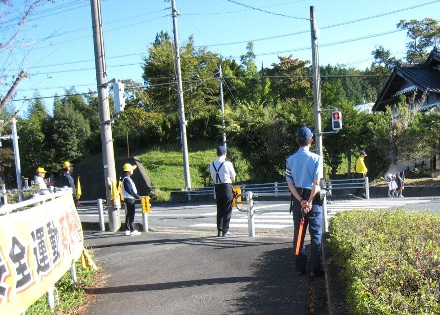 中津川地区交通安全協会川上支部では、令和7年9月21日から9月30日までの秋の全国交通安全運動の活動として、期間中の平日、中津川市川上矢柱地内の川上大橋東三叉路周辺において、通学児童・生徒の見守りを行い、ハンドプレートを掲げる等して通行中のみなさんに交通安全を呼びかけました。