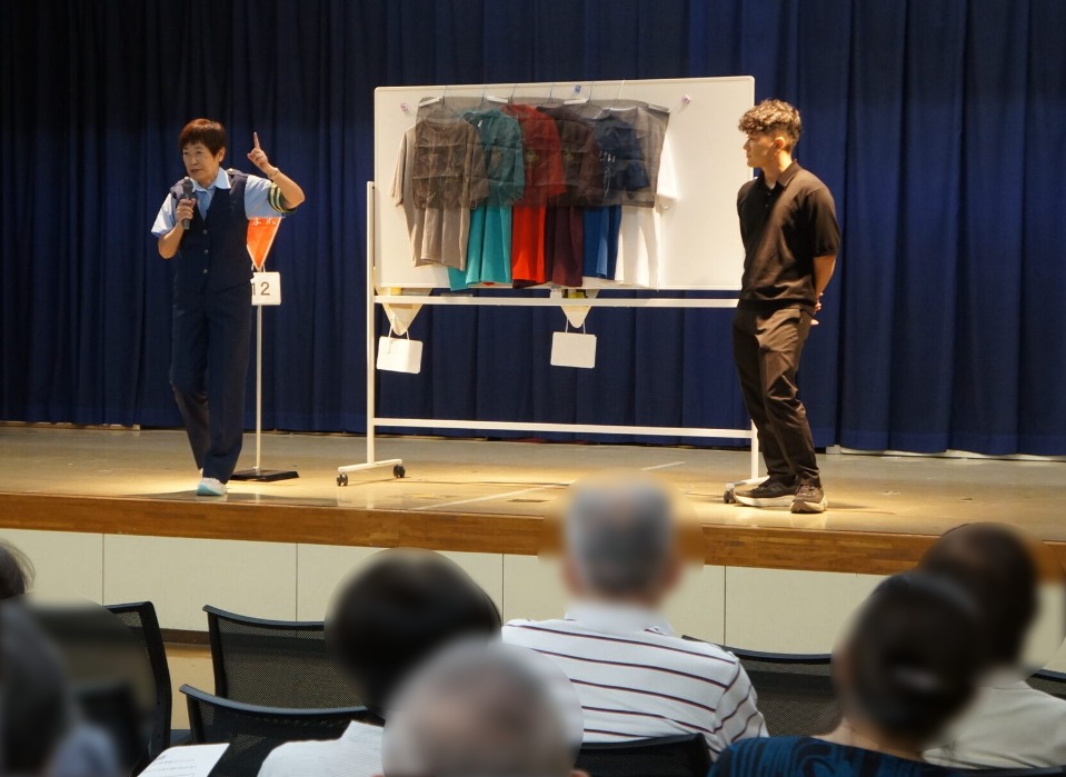 可児地区交通安全協会では、令和7年9月21日から9月30日までの秋の全国交通安全運動の活動として、令和7年9月30日、可児郡御嵩町中地内の御嵩町中公民館において、御嵩町高齢者交通安全大学校9月講座を開催し、受講されたみなさんに、薄暮時や夜間の服装や反射材の着用などについて体験していただきました。