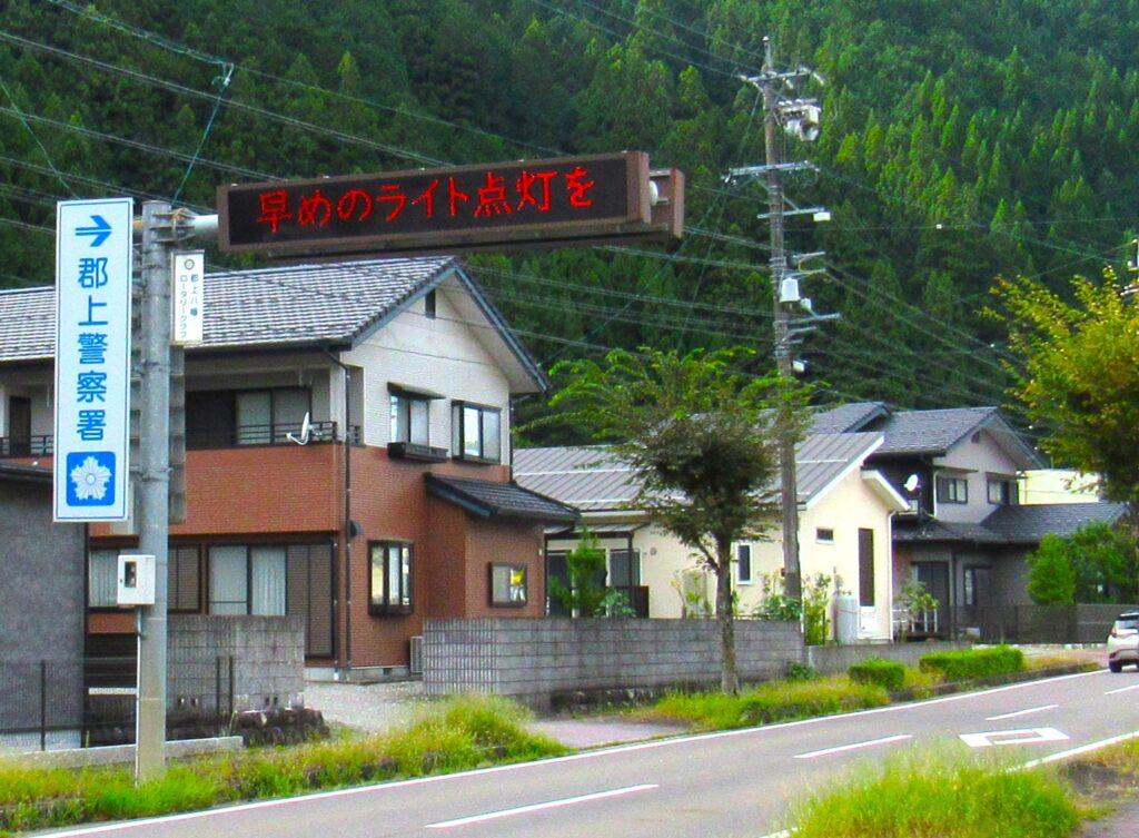 郡上地区交通安全協会では、令和7年9月21日から9月30日までの秋の全国交通安全運動の活動として、郡上市八幡町中坪地内の郡上警察署前の電光掲示板で交通安全を呼びかけました。