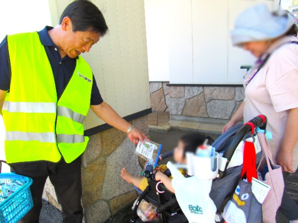 中津川地区交通安全協会坂本支部では、令和7年9月21日から9月30日までの秋の全国交通安全運動の活動として、交通事故死ゼロを目指す日である令和7年9月30日、中津川市千旦林地内のJAひがしみの坂本支店前付近において、「日本一歩行者を大切にするまち さかもとキャンペーン」として、通学児童の見守りをするとともに通行中のみなさんにチラシをお配りして、交通安全を呼びかけました。