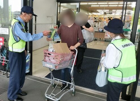 高山地区交通安全協会では、令和7年9月21日から9月30日までの秋の全国交通安全運動の活動として、令和7年9月21日、高山市天満町1丁目地内のショッピングモール「フレスポ飛騨高山」において、来店されたみなさんにチラシや交通安全グッズをお配りする等して、交通安全を呼びかけました。