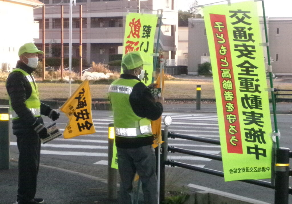 中濃地区交通安全協会では、令和7年12月中に地区内において交通死亡事故が連続して発生したことから、令和7年12月16日から同年12月19日までの間の薄暮時間帯に、地区内の主要交差点において、のぼり旗や交通安全旗を掲げる等して、通行中のみなさんに交通安全を呼びかけました。