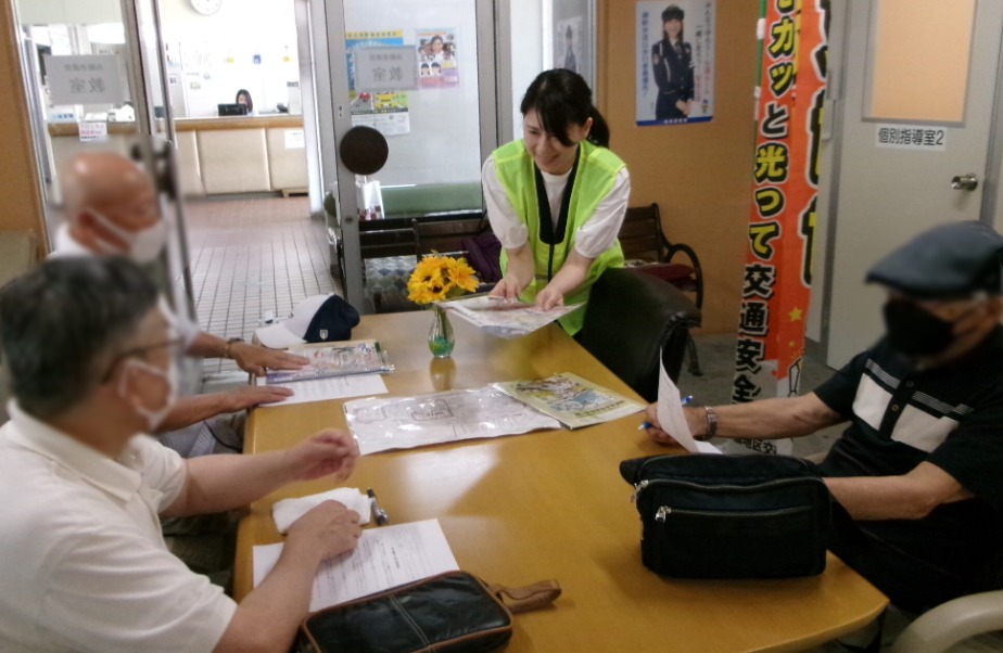 中濃地区交通安全協会では、令和7年6月20日、関市十六所地内の関自動車学校において、高齢者講習を受講されたみなさんに反射材やチラシをお配りして、加齢に伴う身体機能の変化に配意した安全運転を呼びかけました。