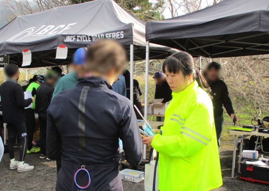 不破地区交通安全協会では、令和8年4月6日から4月15日までの春の全国交通安全運動期間中の令和8年4月12日、地区内において自転車競技イベント「第17回伊吹山ドライブウェイヒルクライム」が開催されたことに伴い、イベント受付会場となった不破郡関ケ原町玉地内のメナードランド跡地において、参加者や関係者のみなさんに交通安全グッズをお配りする等して自転車の安全利用を呼びかけました。