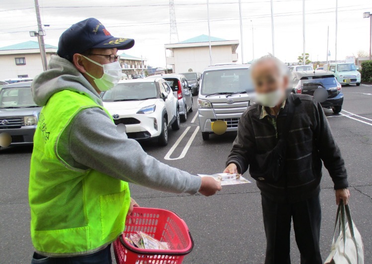 海津地区交通安全協会平田支部では、令和7年12月11日から12月20日までの年末の交通安全県民運動の活動として、令和7年12月14日、海津市平田町今尾地内のスーパーマーケット「ヨシヅヤ海津平田店」において、来店されたみなさんにチラシや交通安全グッズをお配りする等して交通安全を呼びかけました。
