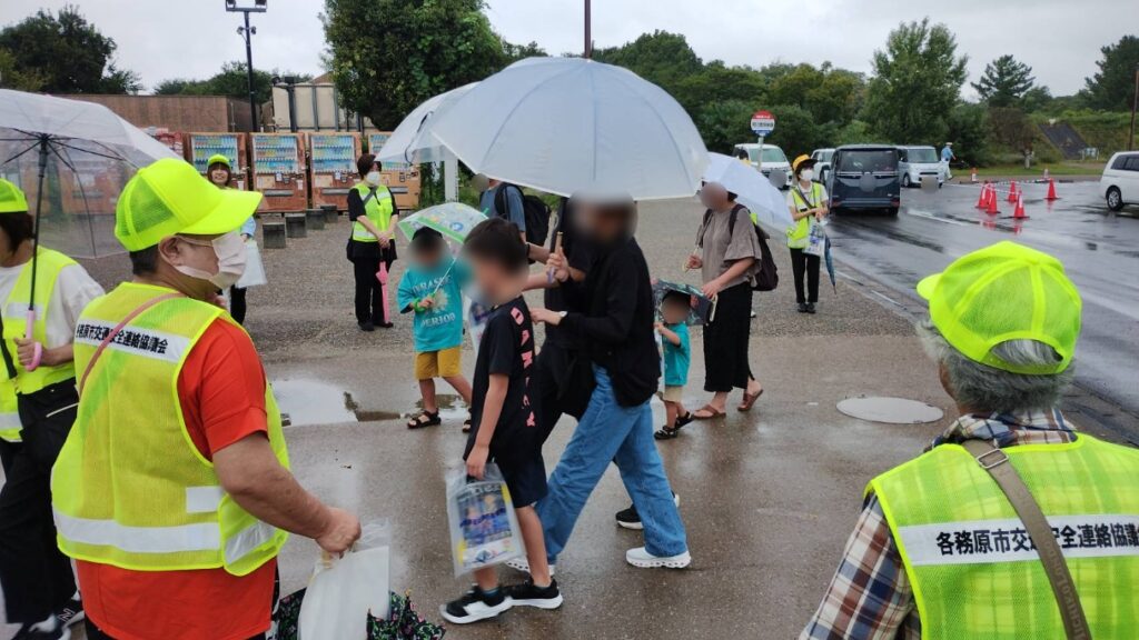 各務原地区交通安全協会では、令和7年9月20日、各務原市川島笠田町地内の川島ハイウェイオアシスにおいて、一日高速道路交通警察隊長に任命された気象予報士の山田修作さんとともに、「オータムセーフティ作戦」として施設利用者のみなさんに交通安全グッズやチラシなどをお配りして交通安全を呼びかけました。