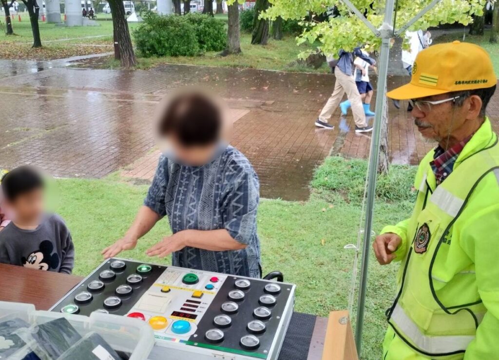 各務原地区交通安全協会では、令和7年10月4日、各務原市那加門前町3丁目地内の各務原市民公園において開催された、「各務原市福祉フェスティバル2025」にブースを設け、来場されたみなさんに運転適性検査機器の体験等をしていただき、チラシや交通安全グッズをお配りして、交通安全を呼びかけました。