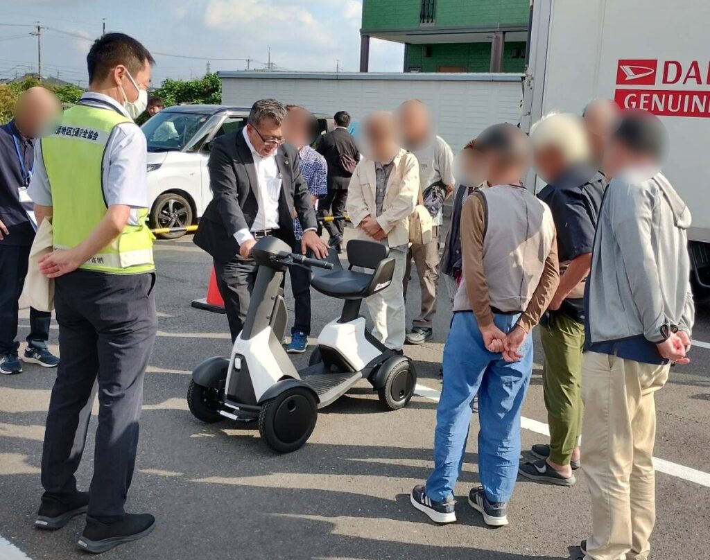 各務原地区交通安全協会では、令和7年10月10日、各務原市蘇原野口町1丁目地内の「蘇原コミュニティセンター」において、「高齢者交通死亡事故抑止プロジェクトチーム」の活動として高齢者交通安全セミナーを開催し、参加されたみなさんに交通安全サポート車やシニアカーの乗車体験をしていただきました。