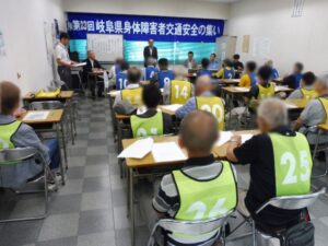 岐阜県身体障害者福祉協会と共催し、令和7年9月21日、高山市松之木町地内の高山自動車学校において「第23回岐阜県身体障害者交通安全のつどい」を開催しました。つどいには25名の方が参加し、交通安全講習、運転適性検査、JAF講師による自動車の日常点検講習、自動車コースでの安全運転競技等を行いました。