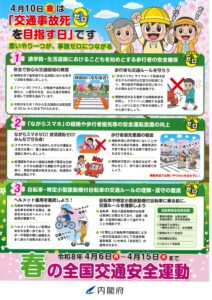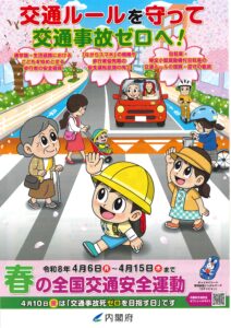 〇 4月10日(金)は「交通事故死ゼロを目指す日」です。