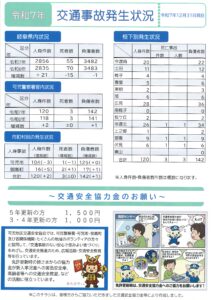 可児地区交通安全協会では、可児地区交通安全協会の活動や令和7年中の地区内の交通事故発生状況を紹介した「交通安全かわら版第20号(春号)」を発行しました。 地区交通安協会の活動は、みなさまからいただいた交通安全協力金で支えられています。運転免許更新時の交通安全協力金にご理解とご協力をお願いします。