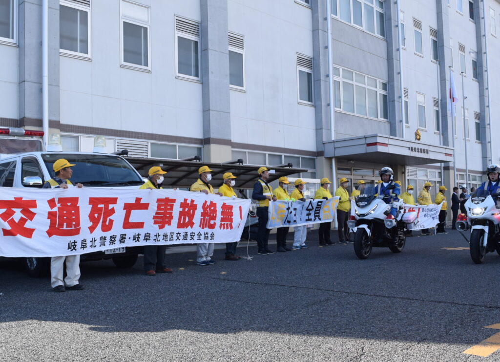 岐阜北地区交通安全協会では、令和7年10月28日、岐阜北警察署において開催された、高齢者の交通事故被害から守るため任命された「シルバーセーフティ交通安全十傑」の出発式に参加しました。