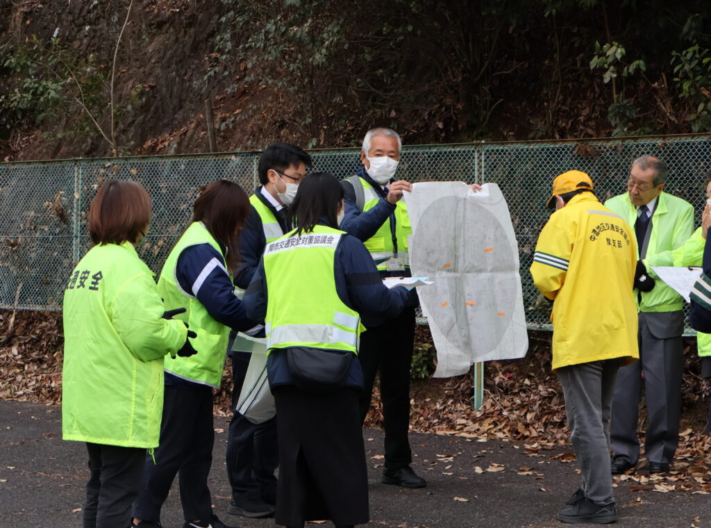 可児地区交通安全協会では、令和6年11月27日に可児市大森地内において道路横断中の高齢歩行者が乗用車にはねられる交通死亡事故が発生したことから、令和6年12月5日、交通事故現場付近の家庭を訪問して、チラシや反射材用品等をお配りし、交通事故防止を呼びかけました。