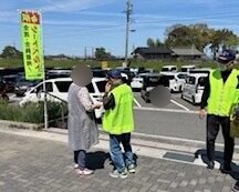 海津地区交通安全協会南濃支部では、令和8年4月6日から4月15日までの春の全国交通安全運動の活動として令和8年4月12日、海津市南濃町羽沢地内の道の駅「月見の里 南濃」において、施設を利用されたみなさんにチラシや交通安全グッズ等をお配りして、交通安全を呼びかけました。
