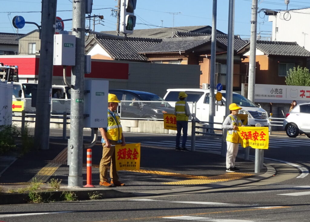 岐阜北地区交通安全協会では、令和7年9月21日から9月30日までの秋の全国交通安全運動の活動として、「交通事故死ゼロを目指す日」の令和7年9月30日、地区内の主要交差点や通学路において、通学児童・生徒の見守りを行い、交通安全旗やハンドプレートを掲げる等して、通行中のみなさんに交通安全を呼びかけました。