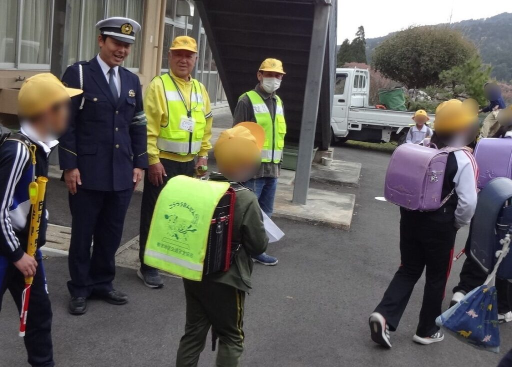 養老地区交通安全協会では、令和7年11月17日、養老郡養老町石畑地内の養老町立養老小学校において、西脇養老地区交通安全協会長が児童のみなさんに交通安全の話をした後、通学路で見守り活動を行いました。