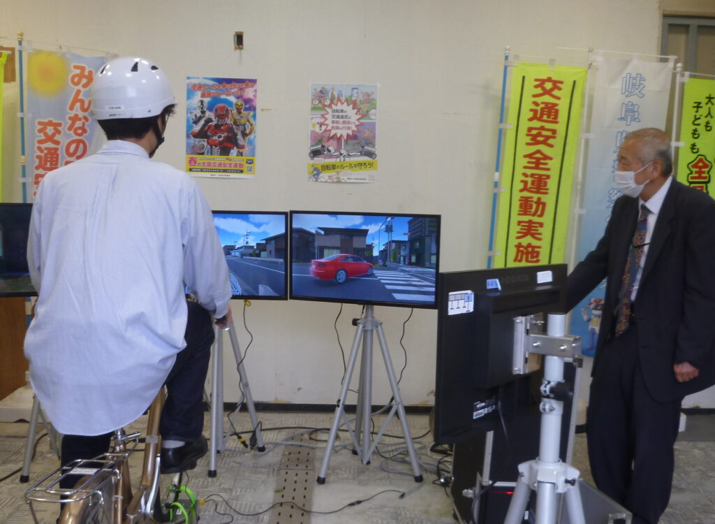 山県地区交通安全協会では、令和8年4月6日から4月15日までの春の全国交通運動期間中の令和8年4月15日、山県市高木地内のスーパーマーケット「平和堂高富店」において、来店されたみなさんにチラシや交通安全グッズをお配りし、自転車シミュレータの体験をしていただく等して、交通安全を呼びかけました。