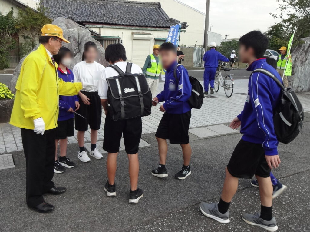 要路地区交通安全協会では、令和7年10月24日、養老郡養老町高田地内の養老町立高田中学区において、高田中学校MSJリーダーズと協力して、下校する生徒にチラシや交通安全グッズを配布する等して、交通安全を呼びかけました。
