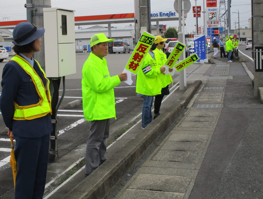 岐阜北地区交通安全協会では、県民交通安全の日である令和7年10月15日、地区内の通学路や主要交差点において、通学生徒の見守り、交通安全旗やのぼり旗を掲げる等して、通行中のみなさんに交通安全を呼びかけました。