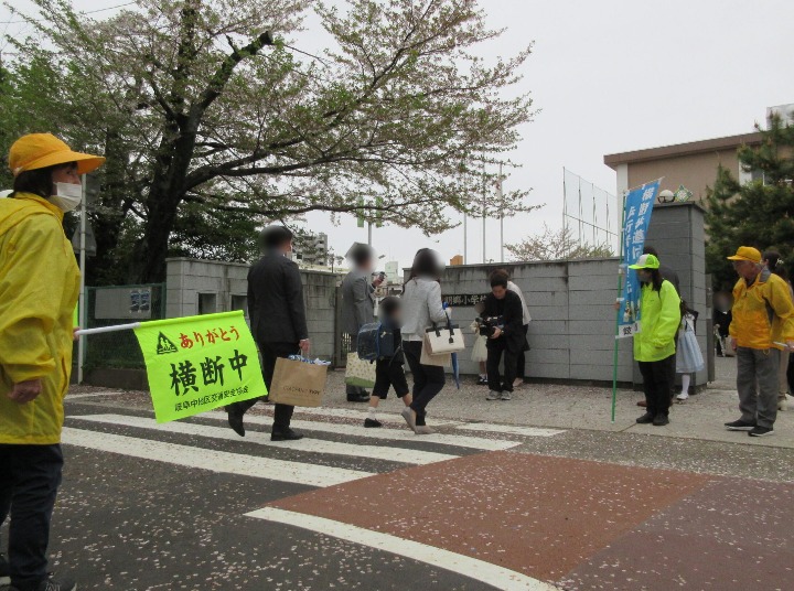 岐阜中地区交通安全協会では、令和8年4月6日から4月15日までの春の全国交通安全運動の活動として令和8年4月7日、岐阜市本郷町3丁目地内の岐阜市立明郷小学校正門前において、新入学児童や保護者への見守り活動を行い、通行中のみなさんに交通安全を呼びかけました。
