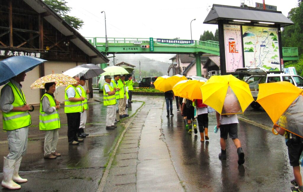 高山地区交通安全協会では、春の全国交通安全運動期間中の令和7年4月8日、地区内の通学路等において、交通安全旗を掲げるなどして児童・生徒の見守り活動を行い、通行中のみなさんに交通安全を呼びかけました。