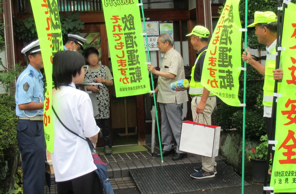 飛騨地区交通安全協会古川第一支部では、令和6年8月26日、飛騨警察署の「飲酒運転取締り波紋作戦」に協力してJR飛騨古川駅周辺の飲食店にチラシ等をお配りして、飲酒運転の根絶を呼びかけました。